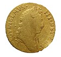 Guinea – This was a gold coin introduced by Charles II, which was minted in Great Britain between 1663 and 1814. The name came from the Guinea region in West Africa, from where much of the gold used to make the coins came from. It was the most valuable coin in England, containing approximately one-quarter of an ounce of gold. Initially, it was worth one pound, but from 1717 to 1816 its value changed to 21 shilling due to the amount of gold used in it together with an increase in gold prices. During the Great Recoinage of 1816, the guinea was demonetised and replaced by the gold sovereign. Two guinea and five guinea coins also existed and there were four crowns plus one shilling in a guinea.