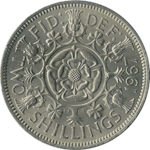 Florin – The British florin was issued from 1849 to 1967 and was worth 2 shillings, there being 10 florins in a pound, which made it an early form of decimalisation. A double florin also existed. Initially it was made mainly of silver, but after 1947 it was made of cupronickel, its silver content already having been reduced in 1920. It was also known as a two shilling or two bob coin, abbreviated as 2/-. The English coin first issued in 1344 by Edward III of England is also known as a florin.